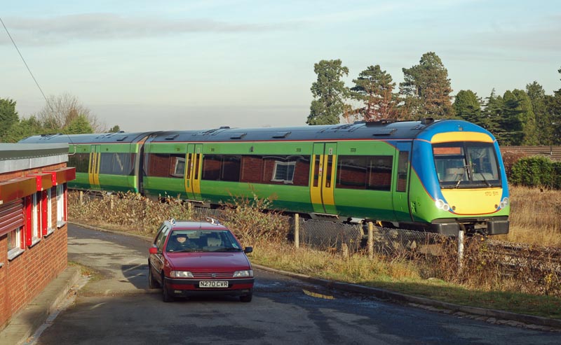 This is a nice picture of Class 170 dmu No.170511 (minus its former Central Trains logos) passing the site of Malvern Link Goods Yard (22/12/1007).