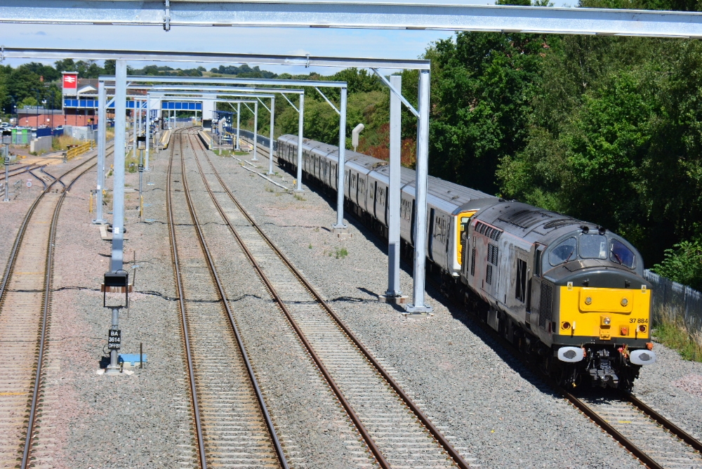 The train is one of many in July taking out of use class 319 electirc multiple units from Hornsey for sotrage at Long Marston. Traction was provided by class 37 diesel locomotive No.37884 which is hauling class 319's No.319447 and 319438.