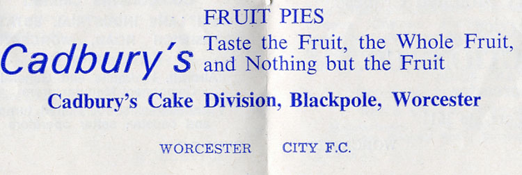 This advert is taken from a Worcester City Football Club programme from 1971 (collection of Andrew Smith).