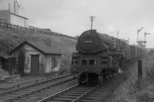 Bromsgrove's large locomotive towards the end of the use of steam banking locomotives at Bromsgrove was No.92230.