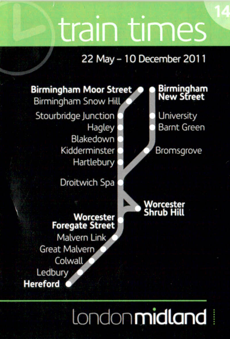 In a distinctly backward move London Midland has produced its timetables for the county in a very small fold-out style of leaflet using the normal microscopic font size. Timetables are difficult enough to understand without the need to render the type unreadable to a person of even average eyesight. Bring back proper booklets please but leave the clear and concise route map.
