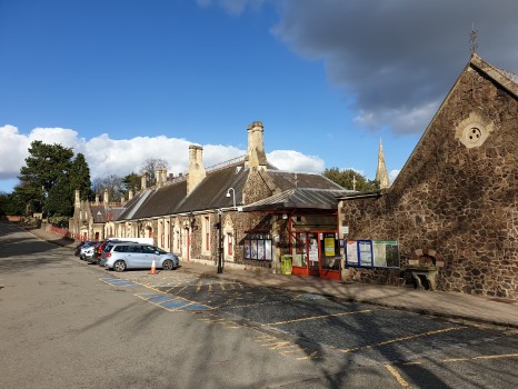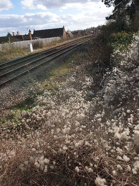 Andrew Smith took the two pictures (above) on Thursday 26th Febraury 2021 during a rare period of bright sunshine. On the left is an exterior view of the station buildings whilst the one on the right shows the overgrown trackbed of the former "parcels" siding at the Malvern Wells end of the "up" platform.