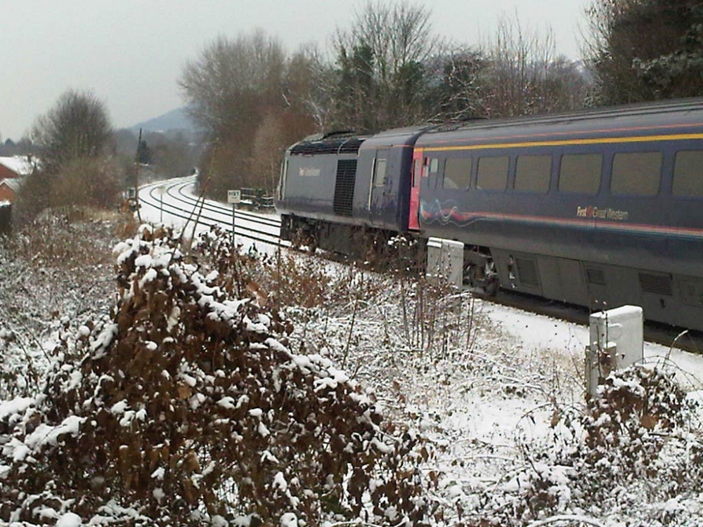 On a very cold 20th December 2010, First Great Western HST class 43 No.43188 pulls steadily away from Great Malvern with the very late running 10:22 service from London Paddington to Hereford.