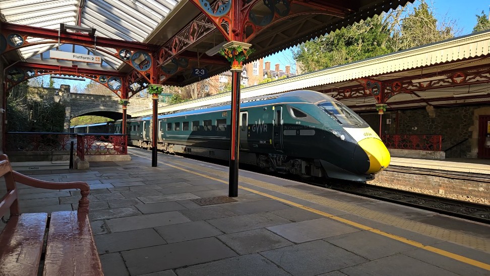 Hitachi built 9-car diesel multiple unit No.800310 arriving at Great Malvern Station on Friday 28th Febryary 2025 with the 11.52 Paddington to Hereford train (Code: 1W02).