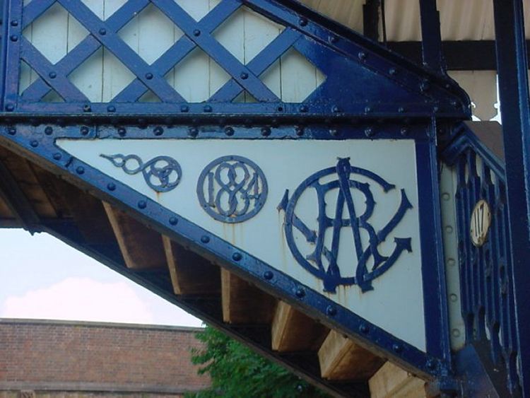 The ornate decoration on the passenger footbridge.