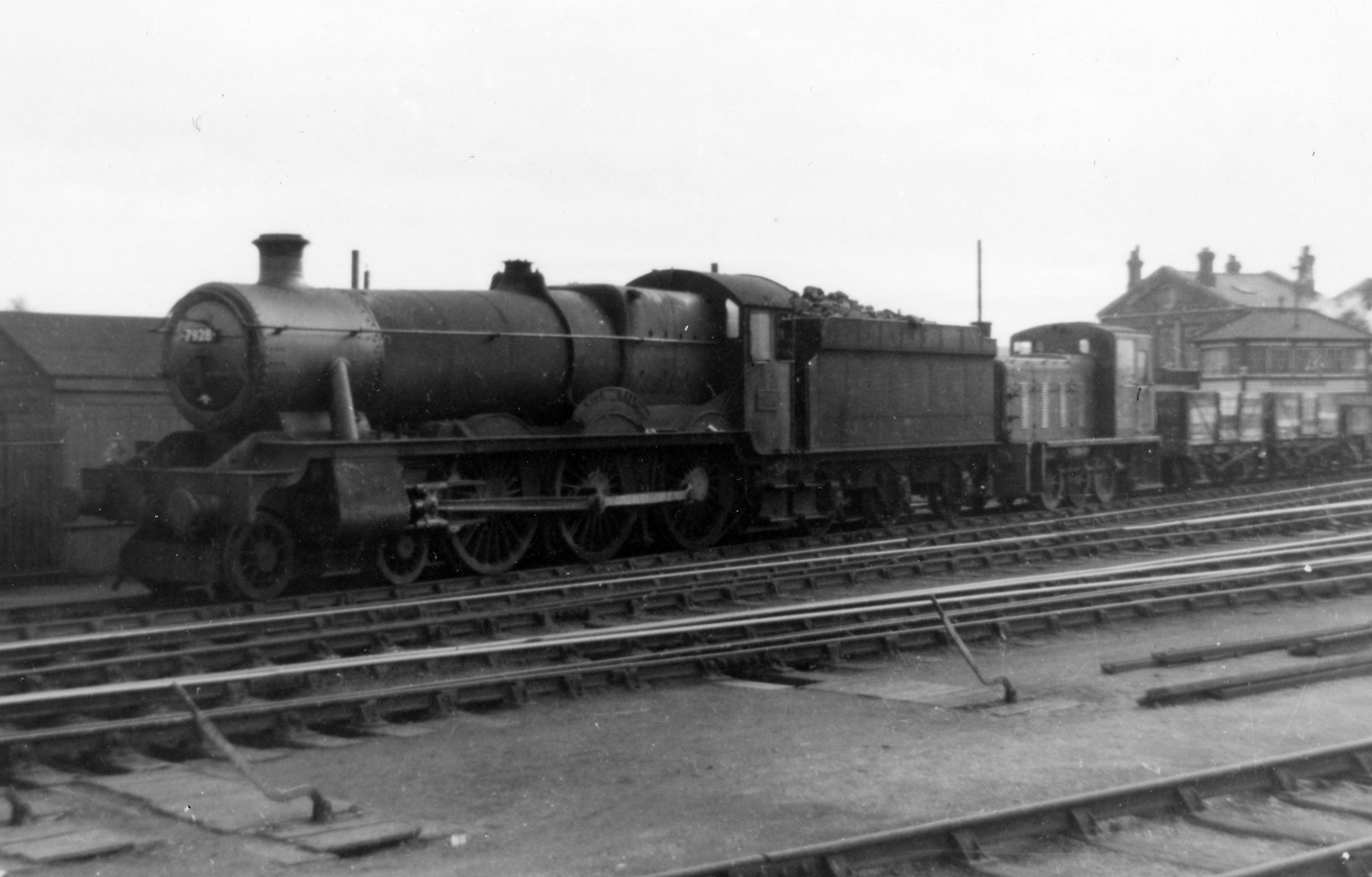 Modified "Hall" class No.7928 "Wolf Hall" spent its entire worknig life at Worcester and is seen here piloting a BR Swindon built class 03 0-6-0 diesel shunter on a freight train at Worcester.