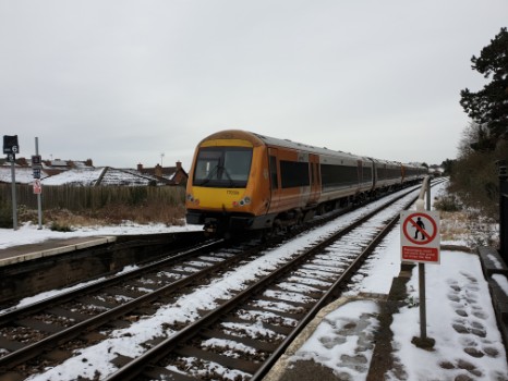 On Sunday 24th January 2021 Malvern experienced its heaviest snowfall for many years. Two days later there was still plenty of lying snow at Great Malvern Station as can be seen in this photograph, taken by Andrew Smith, of class 170 two-car diesel multiple units Nos.170505 and 170506 departing for Hereford with the 09.32 from Worcester Foregate Street. This service (train code No.1V23) normally starts at Birmingham New Street. The reason for the partial cancellation of the service was given as signalling problems.