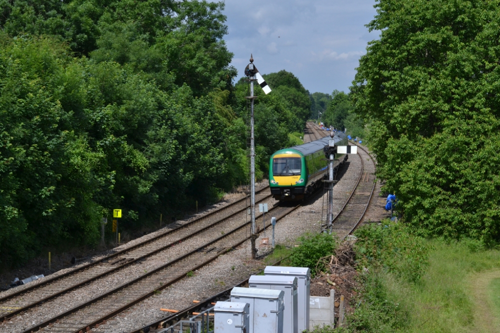 On Friday 17th June 2016, one of the last trains to pass the pass through Malvern Wells before the start of the work was London Midland's three-car diesel multiple unit No.170634 with a very late running 12.49 service from Birmingham New Street to Hereford (train code No.1V27).