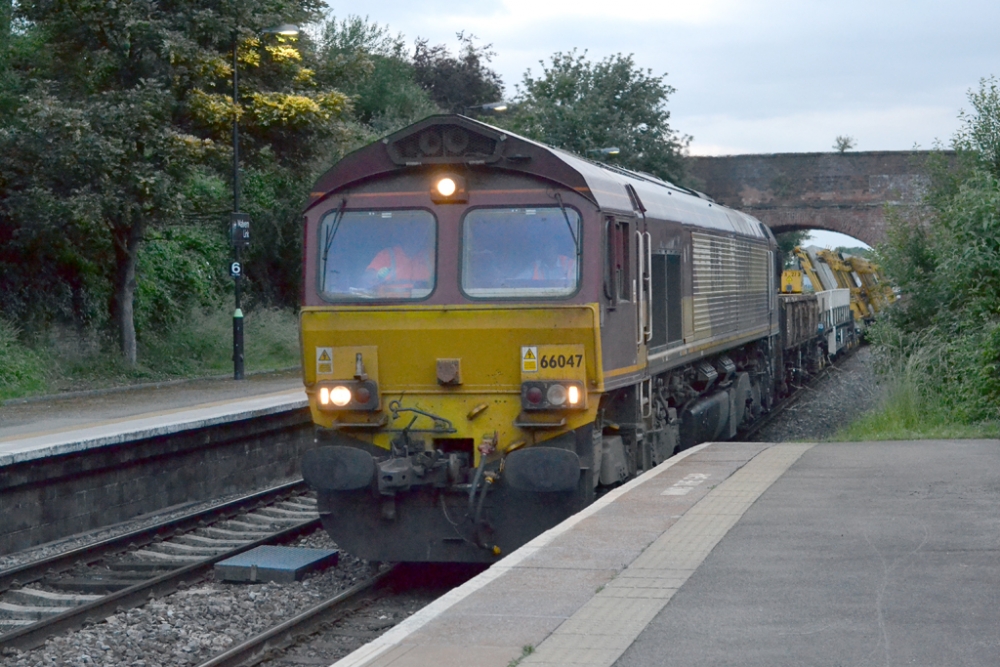 This is the first of three trains that arrived at Malvern over Saturday night/Sunday morning. No.66047 was over an hour late bringing more track panels to the site at Malvern Wells. All three trains used the 'down' main line and this train was put into the loop at Malvern Wells.