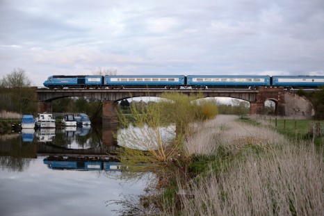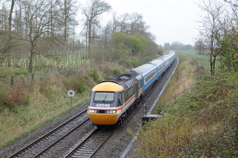 The Blue Pullman HST passed through the county on 13th April 2022 with the long distance 05.15 Bangor - Kingswear special for insomniacs. An early start is inevitable when the distance is 335 miles each way, but that's the stuff of 1960s WLS coach tours. The train passed Spetchley 10min early at 10.03 with substitute power car 43049 on the front.