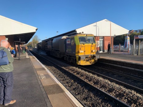 Pete Stamper photographed the 08.49 Kings Norton via Birmingham New Street, Perry Barr, Smethwick and Worcester to Kings Norton (train code No.3S02). It is a Windhoff Multi-Purpose Vehicle No.98967. Photograph taken on 25th November 2022.