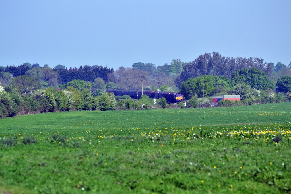 The weather was grim on the first day and following the collpase of freight traffic the only daylight running freight train diverting via Worcester was the Bescot to Avonmouth Hanson tanks, seen at Norton with DB Cargo class 66 diesel locomotive No.66171 in charge. Photograph taken by Andrew Smith.