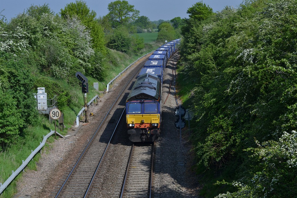 6V92 10:23 Corby to Margam empty steel wagons. This train passes Bromsgrove just after 14:00 if running. No.66097 was seen at Abbotswood on 4th May 2016.