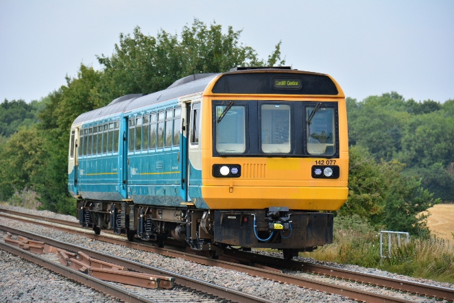 The Class 142 'Pacer' two-car diesel multiple units are rarely recorded in the county so the sight of No.142077 returning to its home depot in Cardiff made a welcome change from the usual units. It was photographed by Steve Widdowson at Pirton Crossing on Thursday 18th August 2016.