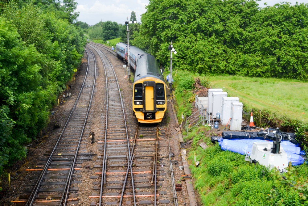 These two photographs show some of the changes to the view from the Peachfield Road bridge in Malvern Wells caused by Network Rail's 2016 modernisation scheme. Above: Class 170 three-car diesel multiple unit No.170633 on the 'up' line with the 10.40 Hereford to Birmingham New Street (train code 1M61) passes class 172 two-car units Nos.172211 and 172218 in the 'down' loop having arrived with the empty stock of the 09.19 Whitlocks End to Great Malvern service (train code 2V14/5S38) on 17th December 2012. Below: Great Western Railways three-car hybrid class 158 diesel multiple unit No.158798 in 'Visit Somerset' livery moves out of the 'down' loop prior to setting back to Great Malvern to form the 14.50 to Weymouth (train code 5094/1O94) on Thursday 16th June 2016. Notice the new lineside equipment boxes. Both photographs were taken by Andrew Smith.